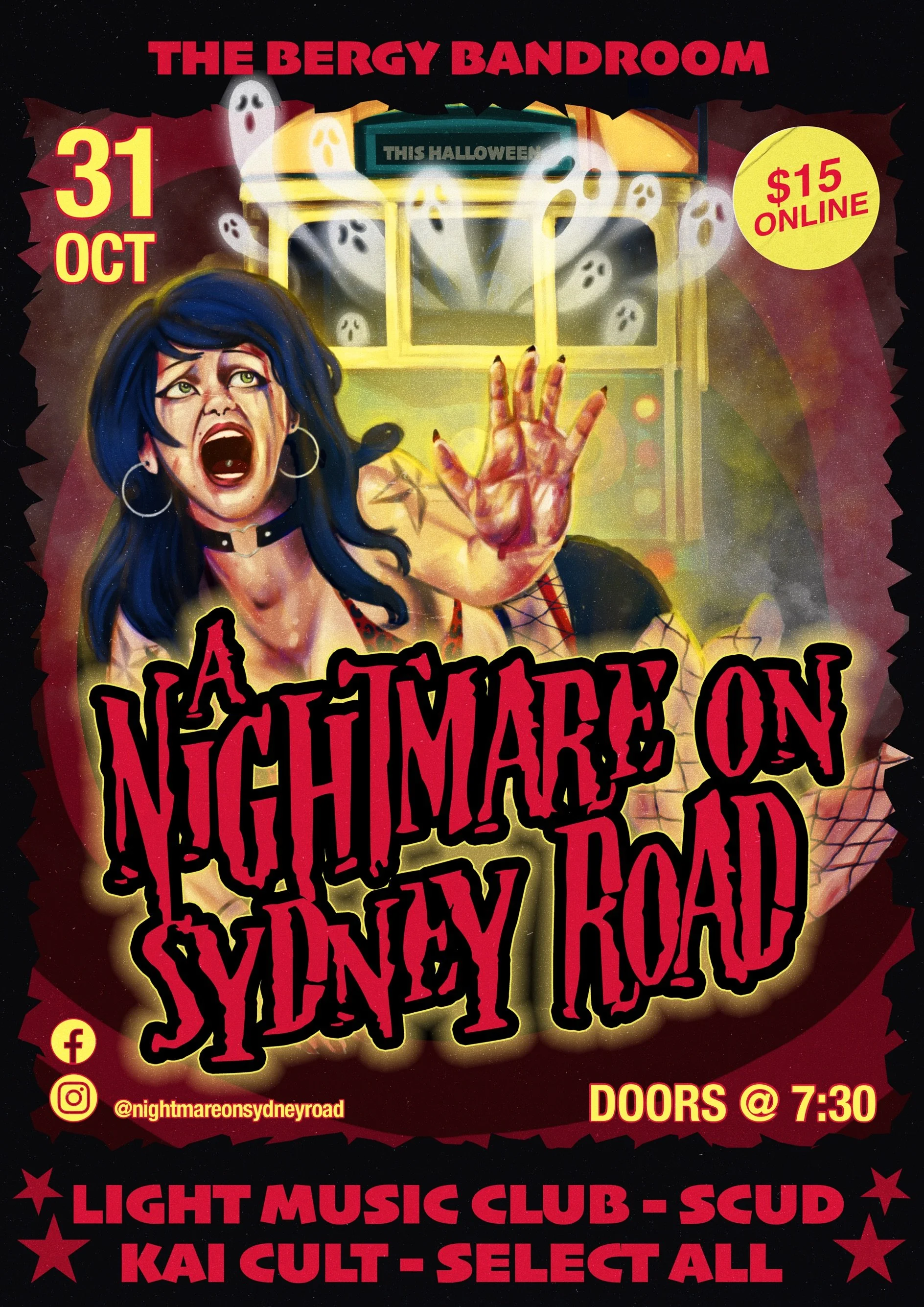 A Nightmare on Sydney Road: A multi-act Halloween event that embraces the gaudy theatrics of low-budget horror, supported by some of our favourite local punk/rock bands.